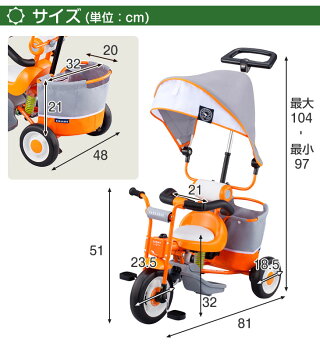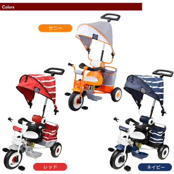 ▼メールでのお問い合わせはこちらbaby-days@shop.rakuten.co.jp▼当店で人気のその他の三輪車▼ サイズ 押し手棒使用時:幅48×奥行81×高さ104cm 押し手棒収納時:幅48×奥行81×高さ97cm前輪直径:23.5cm 後輪直径:18.5cm 重量:約9kg 【スタッフともとものおすすめポイント!】 ・でこぼこ道の振動を軽減するサスペンション搭載! ・紫外線をカットするサンシェード ・お買い物の荷物もたくさん入るバッグ付き! ・ペダルの足の巻き込みを防ぐロック&フリー ・SG基準合格 対象年齢/身長 1.5歳〜5歳未満/80cm〜100cm 素材 スチール、PP、PVC、PU、ポリエステルタイヤ:EVA 耐荷重 本体:20kg 後ろカゴ:8kg カラー サニー、レッド、ネイビー 梱包サイズ 30×51.5×65cm/重量:12kg 送料 【送料無料(北海道・沖縄県・離島は送料別途)】 ※北海道・沖縄県・離島の場合はお問い合わせください。